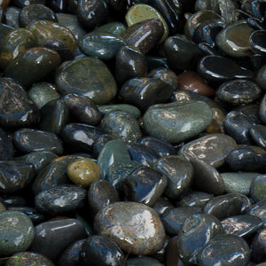 Dark gray-colored river pebbles for your Stone Forest fountain, or for decorative use in your landscaping. The first photos shows them when wet and the second when dry.