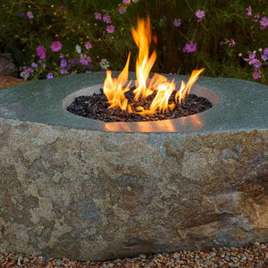 Please choose either blue or black glass pieces. You will need a quantity of 30 lbs of glass, each shard is approximately sized between 3/8" - 1/2". This glass will be used for filling the area above the insulated pad, lava rock base layer, and fire ring for the Natural Boulder Fire Vessel.