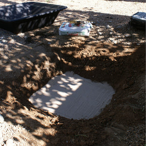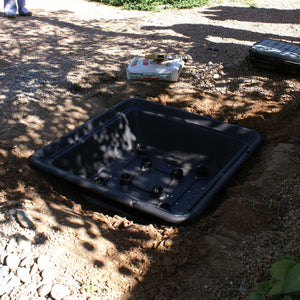 Please flip through the photos to see this kit going into the ground, step-by-step. Step one shows the hole with play sand from the local hardware store for leveling.