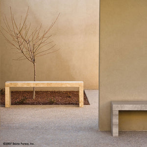 The bench is available in two stone options: Travertino Romano, which is a type of travertine, or Serpeggiante marble.