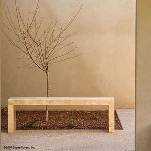 This bench is a contemporary piece made of three solid stone slabs joined together using mortise and tenon-style joints.