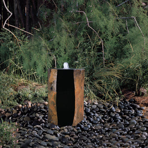 The roughly hexagonal shape of the Natural Basalt Column is created when a lava flow begins to cool from the inside. Fissures form and expand. Finally, the lava flow hardens into a honeycomb of columns. This process creates a stone that is unique to fashion into a fountain.