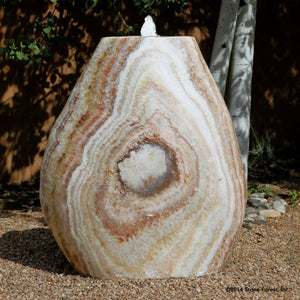 Carved from single blocks of Onyx, Green Marble, and Jurassic conglomerate, the Large Pebble fountains take your beloved rock collection to a new level. Onyx stone is highly variable, the pictured fountains are examples and may no longer be available.