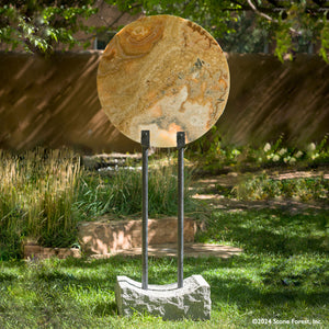 We offer an optional blue-gray granite and iron stand, as shown in the last photo. The overall height including the stand is 70"