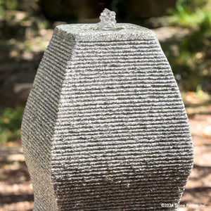 Water ripples down the saw cuts, creating an intriguing visual with a soothing sound.