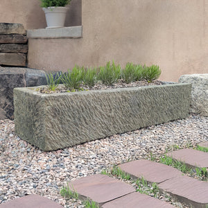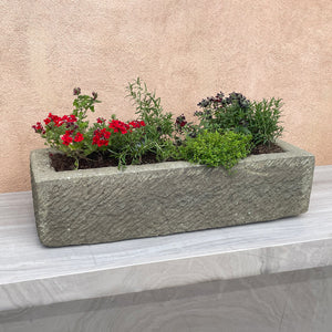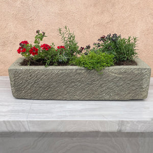 Rectangular Planter hand-carved with hammer and chisel from blocks of Verde Basalt.