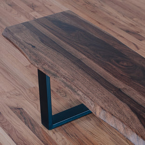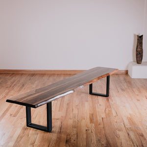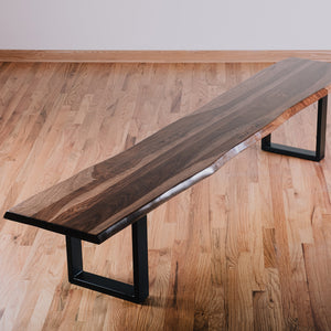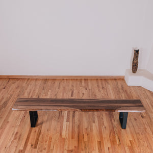 Using nature as our blueprint, we create functional furniture crafted from thick slabs of Indian Rosewood. This bench is supported with metal legs for a contemporary look.